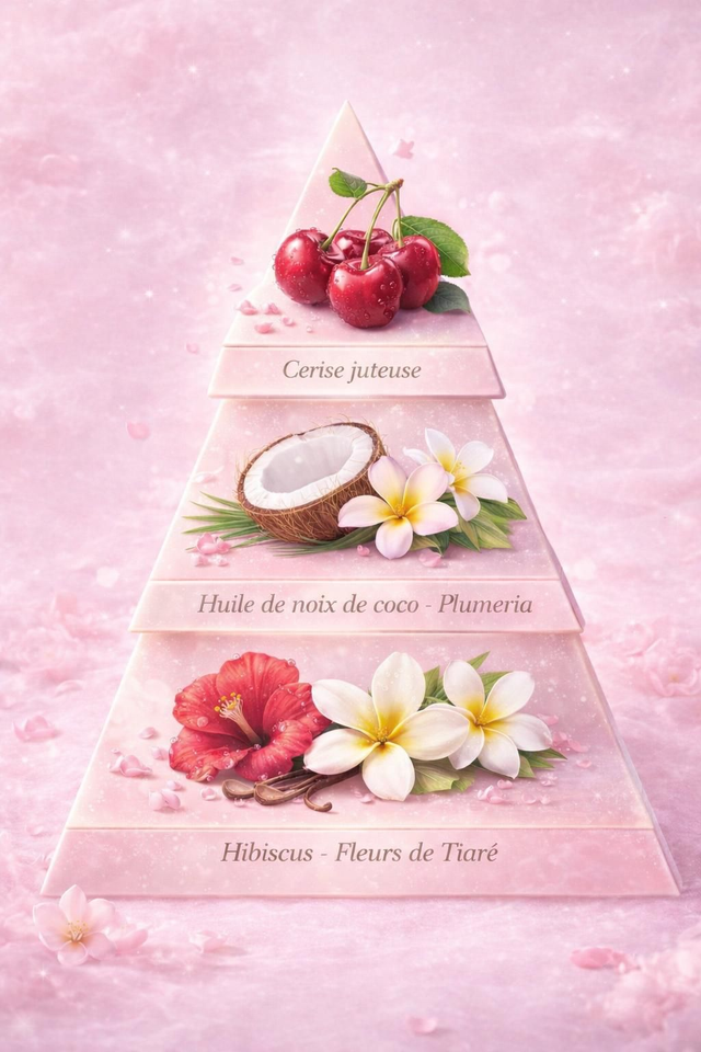 La cerise juteuse en harmonie avec la fleur de tiaré et l'hibiscus.... un voyage au Paradis!