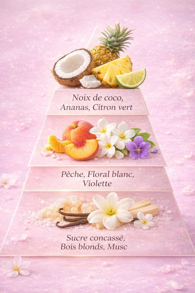 Ce parfum est une explosion de fraîcheur et de douceur fruitée. La noix de coco ajoute une dimension gourmande et exotique.